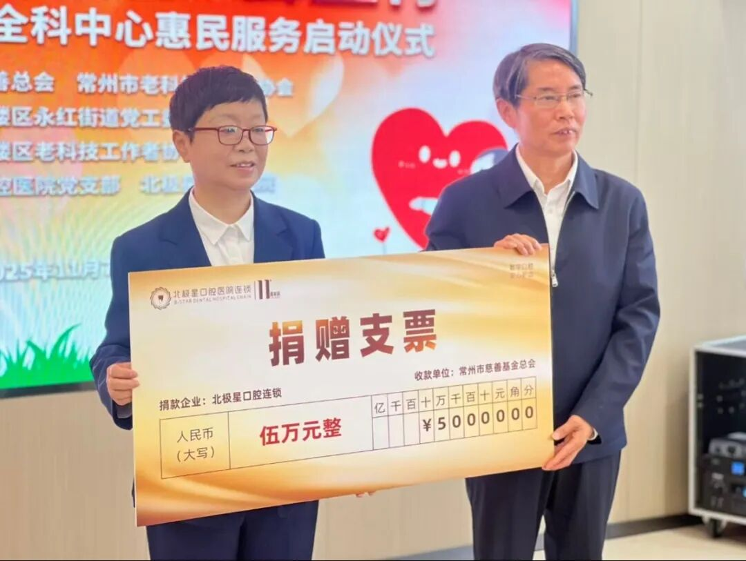 践行社会责任,传递公益温度。启动仪式上,北极星口腔党支部袁常青书记向市慈善总会递交5 万元“星芽爱心基金”,定向帮扶低保家庭口腔健康。市慈善总会代表明确基金用途,强调民生帮扶价值。